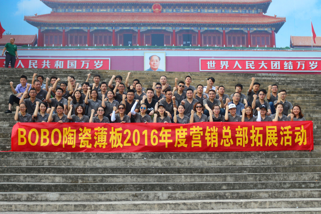短短兩天的LA’BOBO陶瓷薄板戶外拓展活動結束了,每一位家人都很累但也很快樂!這是一次總結之旅、創新之旅、經營之旅、釋放之旅,在這次的活動中,我們一直在學習,也一直在學習中進步。我們收獲的不僅是個人和團隊的融合力、凝聚力,更是對LA’BOBO陶瓷薄板企業文化的一次重大檢閱。從中,我們看到了大家全力以赴的拼搏和奮進、相互信任與默默付出的精神品格,讓我們LA’BOBO人更加堅定不移的去實現“科學利用資源,保護地球環境”的崇高使命以及“打造陶瓷薄板第一品牌”的偉大愿景。