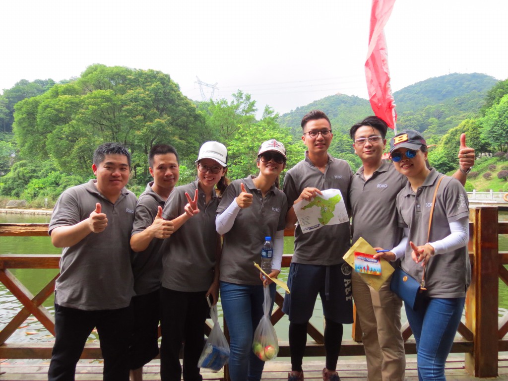 27日上午9點多,在各種期待與憧憬下,汽車在經歷了九曲十八彎、沿途景色秀美的山路后,到達了帽峰山古廟廣場,教練通過幾個輕松簡單的小游戲,拉開了活動的序幕。在教練的指揮下,LA’BOBO大家庭被分成了八個小隊,分別是“夢想隊”“誠信隊”“感恩隊”“創新隊”“奮斗隊”“分享隊”“協作隊”“溝通隊”。每個小隊模擬一家創業公司開展各項工作,由一名“海歸”帶領一群有共同夢想的年輕人,憑借300元的 BOBO幣作為啟動資金,開啟帽峰山掘金之路。
