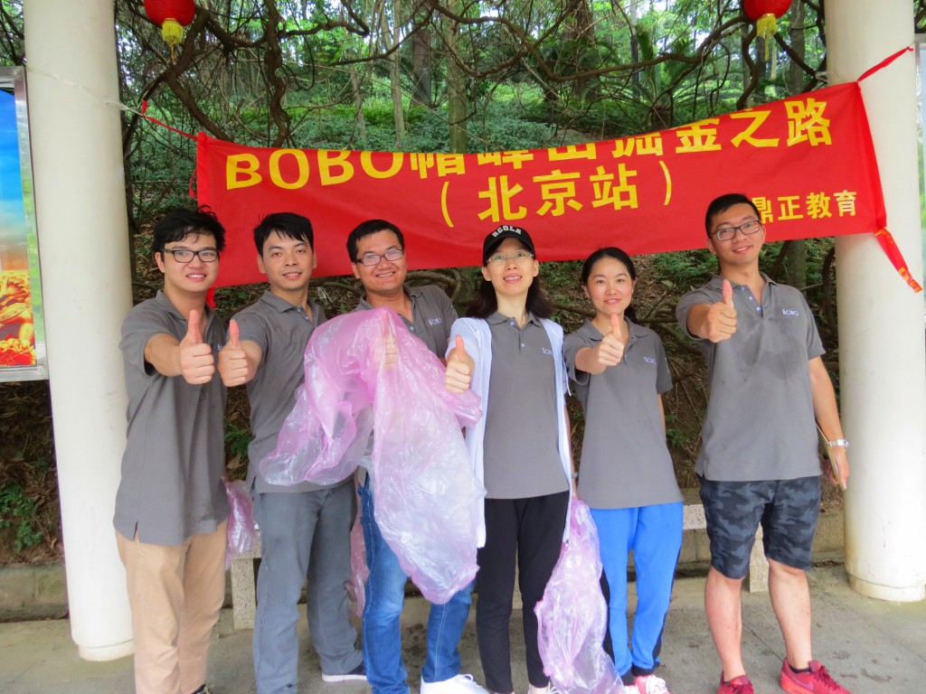 下午還有兩個重要的體現團隊配合的游戲:一是集體拼出“BOBO”字樣;二是戴上眼罩手拉手前行。這兩個游戲都讓所有人明白到,每個個體都很重要,只要一個人犯了錯誤,就會導致整個集體出現問題。在這個環節里,我們一起回顧了一整天活動得到的感悟、出現的問題及處理問題的方法,我們收獲了用汗水、用智慧、用團體的力量取得的成果。