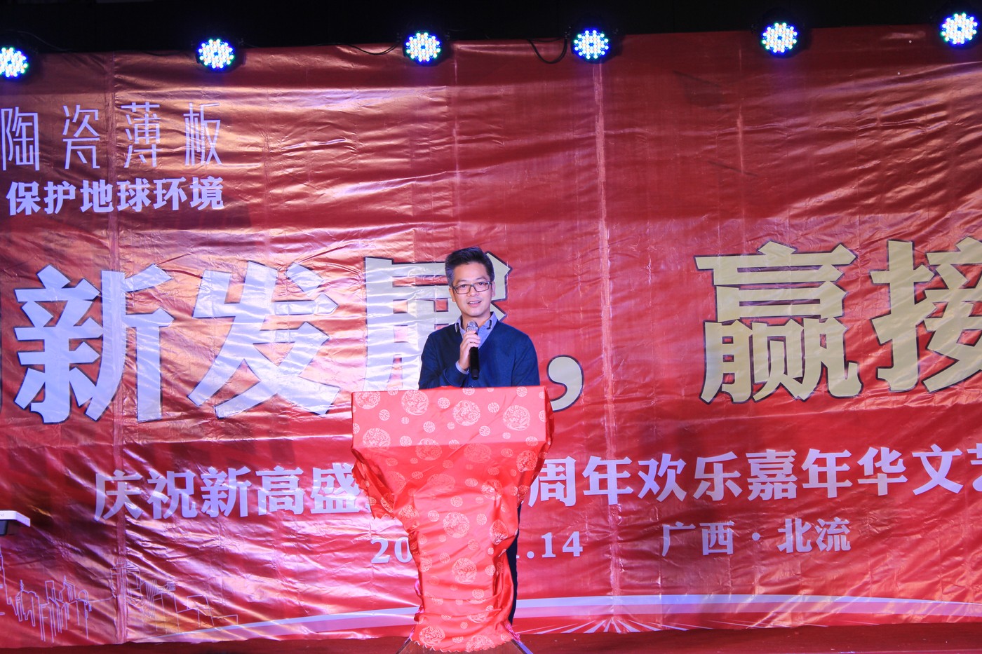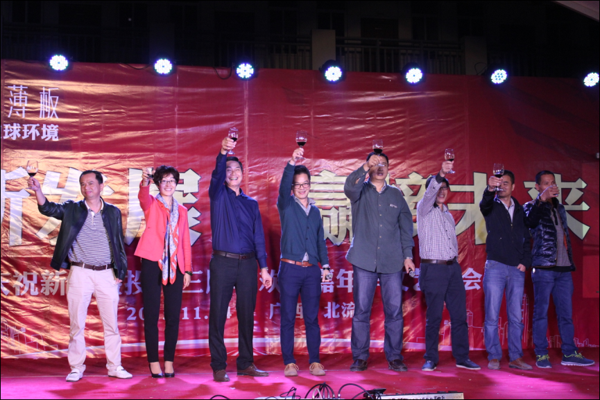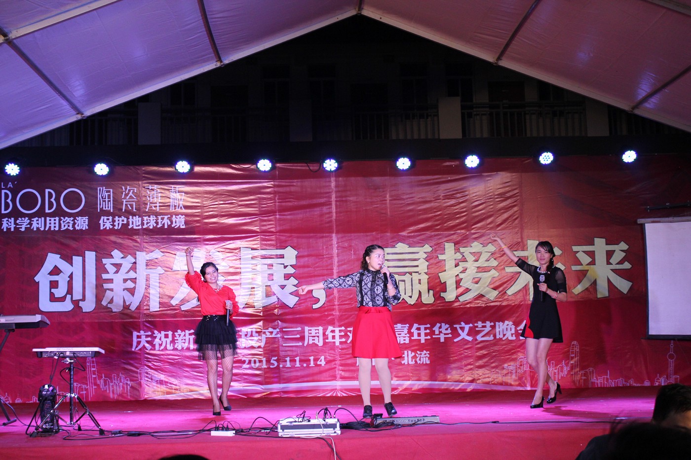 11月14日晚, LA’BOBO陶瓷薄板工廠投產三周年歡樂嘉年華文藝晚會在廣西北流生產基地內隆重舉行,公司全體員工及嘉賓逾五百人歡聚一堂,在一派歡樂祥和的氛圍中舉杯慶賀。慶典集品美酒、嘗美食、獎先進、展才藝、敘情誼于一體,多才多藝的新高盛人紛紛登臺獻藝,展現動聽的歌聲和優美的舞姿,讓整場演出洋溢著歡欣喜慶氣氛。
