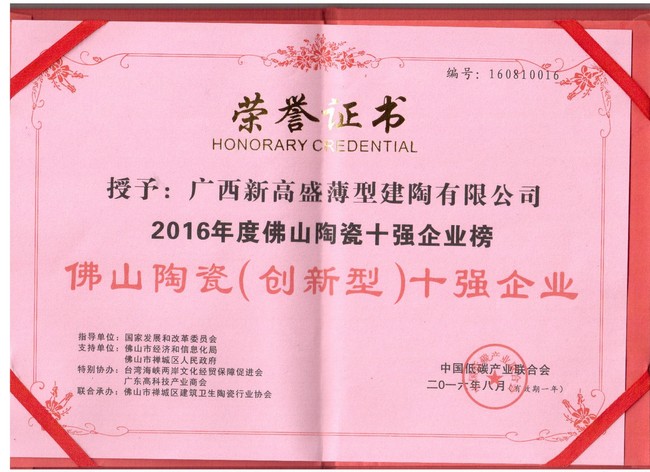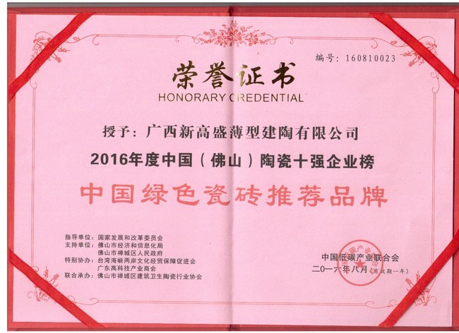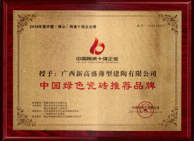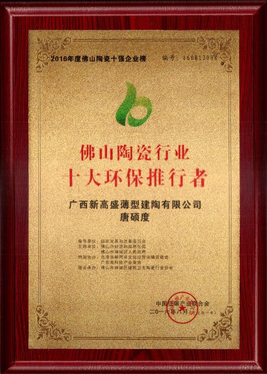 佛山陶瓷十強企業榜是由國家低碳產業聯合會主辦,佛山市經濟和信息化局支持,佛山市禪城區陶瓷協會聯合、美家網、搜陶網等聯合承辦。獲獎的獎項具有唯一性、權威性、排他性,符合本土化、國際化、時代化以及力舉科技創新、經營卓越、愛與奉獻三個方面。本次佛山陶瓷行業“綠色發展”論壇,同時也是響應了佛山市政府號召,完成《2016年佛山市兩會政府工作報告》加快低碳能源管網規劃建設,擴大低碳能源使用范圍;《佛山市2016年大氣污染防治行動方案的通知》相關要求,積極迎合佛山市政府計劃中積極推進綠色低碳的目標要求,同時加快推進產業轉型升級,提升佛山品牌知名度,服務企業生產,給人們社會提供健康環保綠色的選擇。