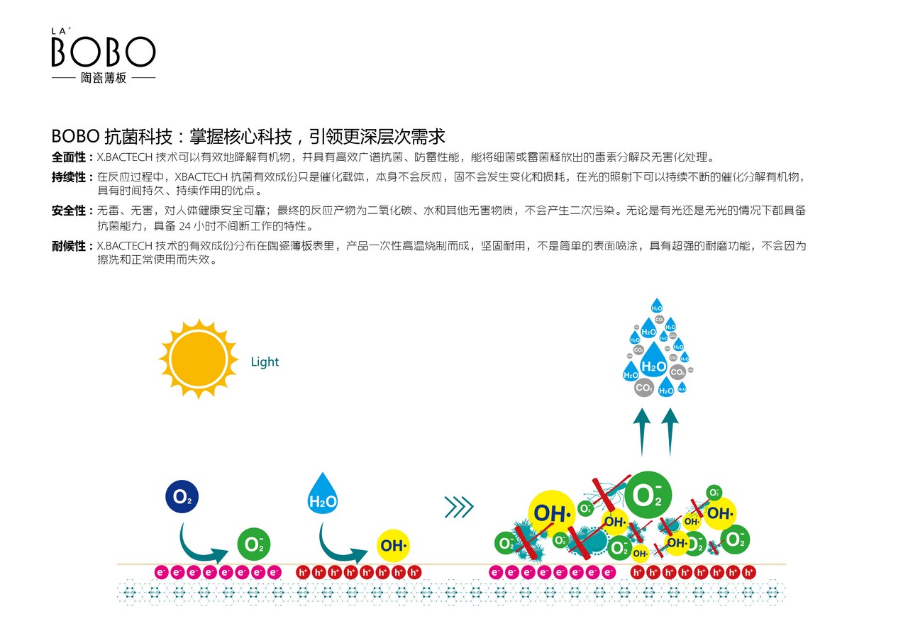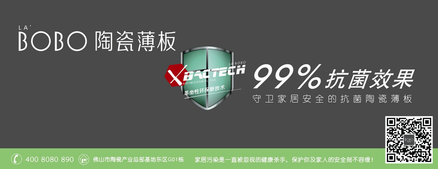 一直以來,LA’BOBO陶瓷薄板都秉承“科技驅動創(chuàng)新,創(chuàng)新引領未來”的經營方針。近日,LA’BOBO陶瓷薄板正式宣告,經歷多時研發(fā)并拿下權威檢測報告、具有殺菌和抗菌功能的新型陶瓷薄板LA’BOBO / X.BACTECH已經成功面世,在本次陶博會開始推向市場,并在全球范圍內進行產品發(fā)布。