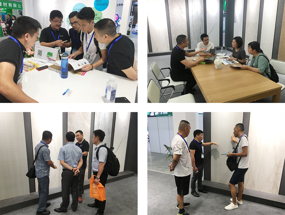 展會期間,最受大家關注的莫過于綠色建筑建材,在E4052展位上,LA’BOBO陶瓷薄板產品由于“薄、輕、硬、新、便、韌”等特點,讓建筑的內、外墻面、環境裝飾與空間的構件及家具的面層得以全面“綠化”,因 此備受矚目,吸引了不少中外人士的注意,大家紛紛前來圍觀新型綠色建材的同時,還有不少觀眾現場簽單,收獲滿滿!