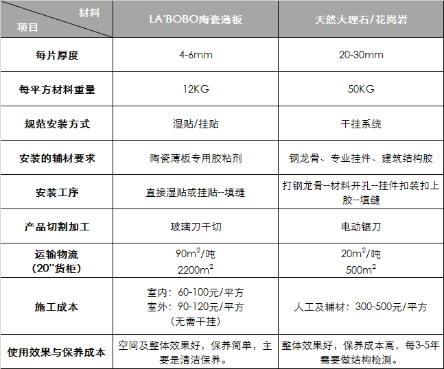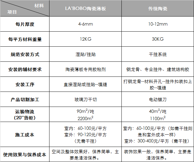 LA'BOBO陶瓷薄板既輕且薄,使其在實際運用中更節(jié)省運輸成本、倉儲成本、施工成本、時間成本,以及人力成本,真正做到省時省錢省力。